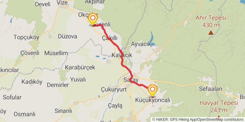Ending at: Akalan Mahallesi, Çatalca, Çatalca