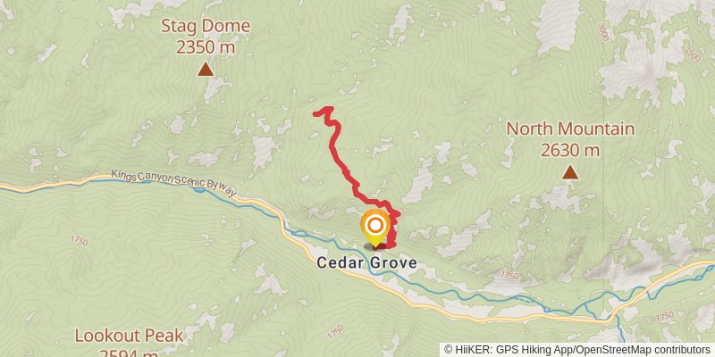 Starting at: Cedar Grove, Kings Canyon National Pk, Fresno County, 93633