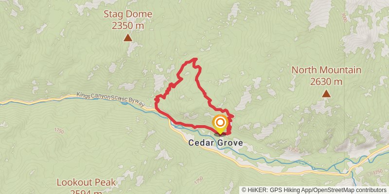 Starting at: Cedar Grove, Kings Canyon National Pk, Fresno County, 93633