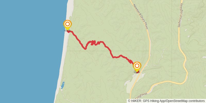 Ending at: Gold Bluffs Beach Campground, Orick, Humboldt County, 95555