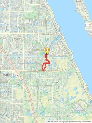 The Loop Beside Turkey Creek from Santiago Drive is a 2.4 km looped trail that starts and ends in Palm Bay, Brevard County, Florida. Based on our data, the hike is graded as Easy. For information on how we grade trails, please read measuring the difficulty of a hiking trail on hiiker. Also, check our latest community posts for trail updates. This hike can be completed in approx 0 hrs 31 mins. Caution is advised on trail times as this depends on multiple variables. For more info read about how we calculate hike time.