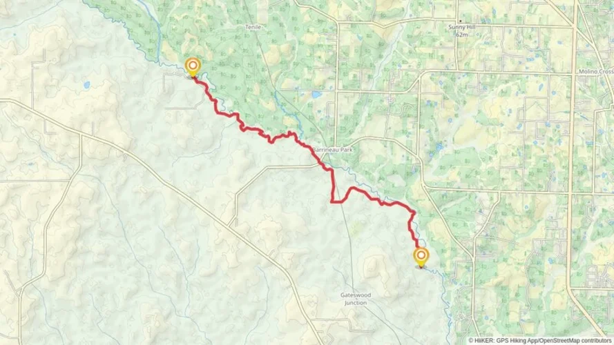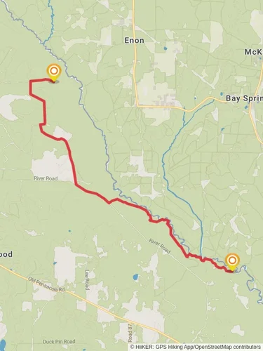 The Lathram Chapel Cemetery and Perdido River Loop is a 5.0 km looped trail that starts and ends in Cantonment, Escambia County, Florida. Based on our data, the trail is graded as Easy. For information on how we grade trails, please read measuring the difficulty of a hiking trail on hiiker. Also, check our latest community posts for trail updates. This trail can be completed in approx 1 hrs 25 mins. Caution is advised on trail times as this depends on multiple variables. For more info read about how we calculate hike time.