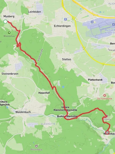 Nestled near the charming town of Esslingen, Germany, the Leinfelden and Siebenmühlental Loop offers a delightful 17 km (approximately 10.5 miles) journey through picturesque landscapes and historical sites. With an elevation gain of around 300 meters (approximately 985 feet), this loop trail is rated as medium difficulty, making it suitable for hikers with a moderate level of fitness.