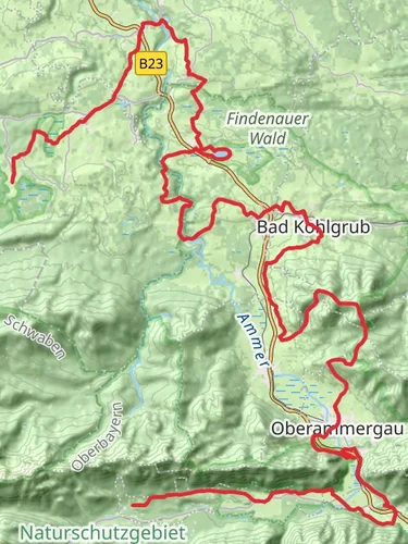 Nestled in the picturesque region near Garmisch-Partenkirchen, Germany, the trail from Bad Kohlgrub to Oberammergau offers a challenging yet rewarding hiking experience. Spanning approximately 19 kilometers (about 11.8 miles) with an elevation gain of around 1000 meters (3280 feet), this point-to-point trail is estimated to be difficult, making it suitable for experienced hikers seeking a robust adventure.