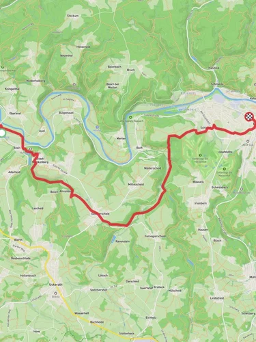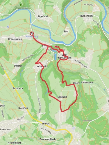 Nestled in the picturesque region of Rhein-Sieg-Kreis, Germany, the trail from Stadt Blankenberg to Nonnenberg offers a captivating journey through history, nature, and scenic landscapes. Spanning approximately 18 kilometers (about 11 miles) with an elevation gain of around 400 meters (approximately 1,312 feet), this point-to-point trail is estimated to be of medium difficulty, making it suitable for moderately experienced hikers.