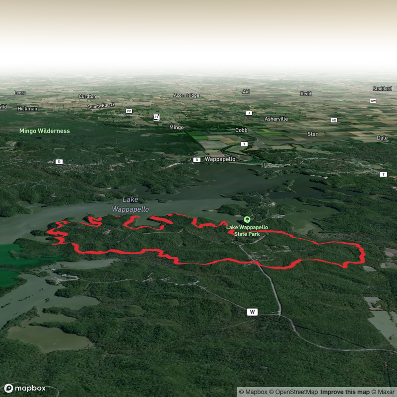 Ozark Trail - Wappapello Section at 57.5 km. For a shorter adventure you can try the