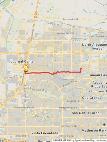 The Northern Diversion Trail - Jefferson Street is a 13.5 km looped trail that starts and ends in Albuquerque, Bernalillo County, New Mexico. Based on our data, the trail is graded as Easy. For information on how we grade trails, please read measuring the difficulty of a hiking trail on hiiker. Also, check our latest community posts for trail updates. This trail can be completed in approx 3 hrs 35 mins. Caution is advised on trail times as this depends on multiple variables. For more info read about how we calculate hike time.
