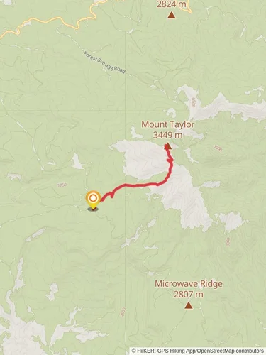 The La Mosca Lookout and Mount Taylor via Continental Divide Trail is a 7.6 km trail that starts in Grants, Cibola County, New Mexico. Based on our data, the hike is graded as Difficult. For information on how we grade trails, please read measuring the difficulty of a hiking trail on hiiker. Also, check our latest community posts for trail updates. This hike can be completed in approx 2 hrs 47 mins. Caution is advised on trail times as this depends on multiple variables. For more info read about how we calculate hike time.