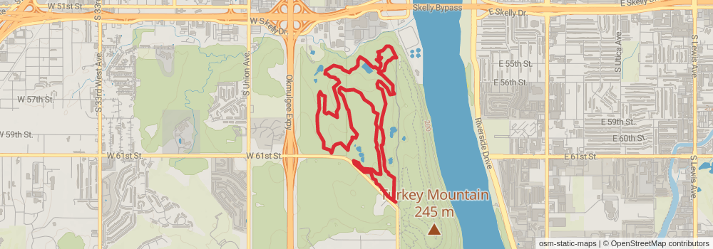 Ending at: Turkey Moutain - Upper Lot, Turkey Mountain, Tulsa, Tulsa County, 74132