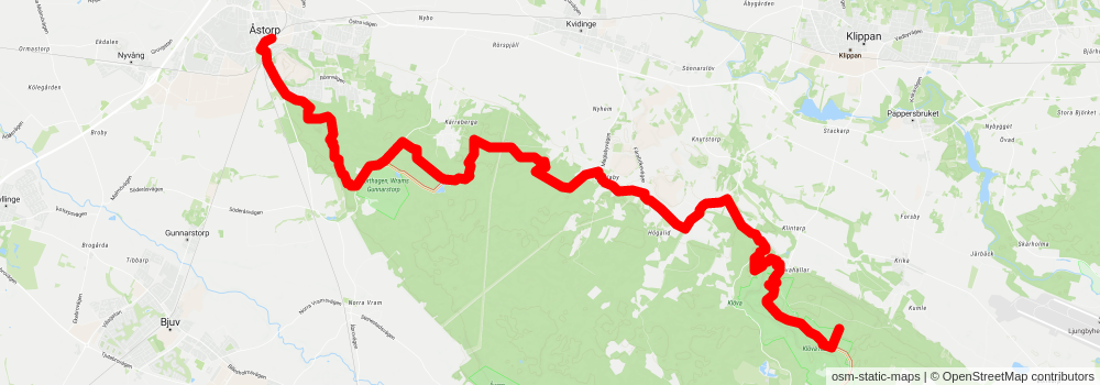 Starting at: Krika-Skog, Klippan, Skåne County, 260 60