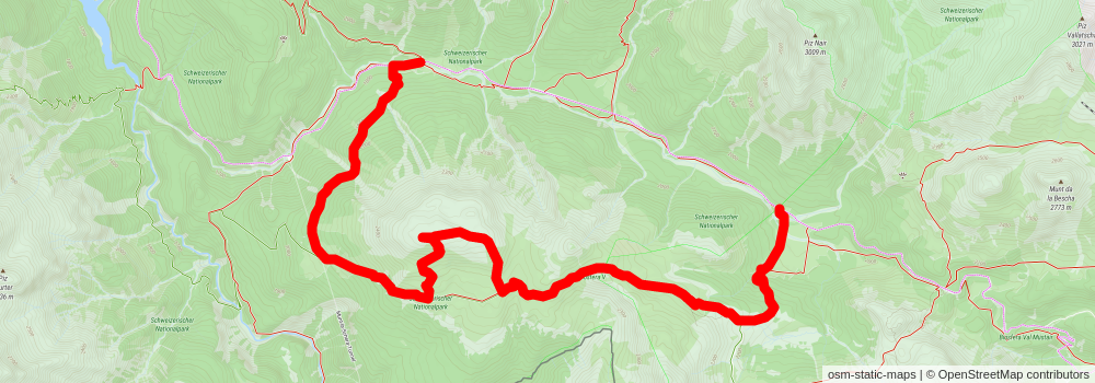 Starting at: Hotel Parc Naziunal Il Fuorn, Zernez, Region Engiadina Bassa/Val Müstair, 7530